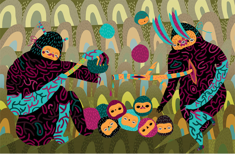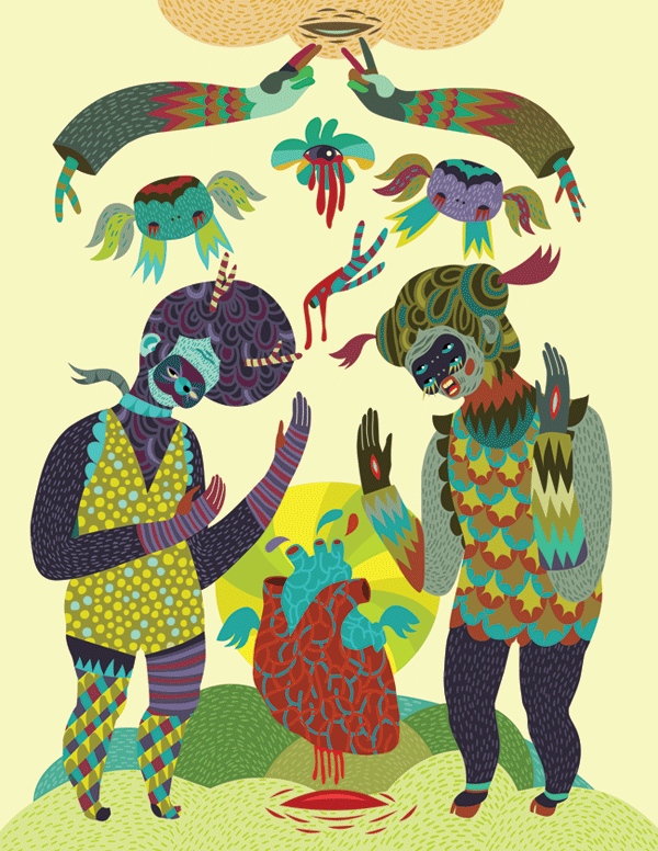 Co-ounder of Keepa, a design studio. Her work is a beautiful combinations of bold shapes, strong colors and geometric patterns inlaid within them. Her sense of storytelling reminds me of ancient cave paintings depicting the life of some